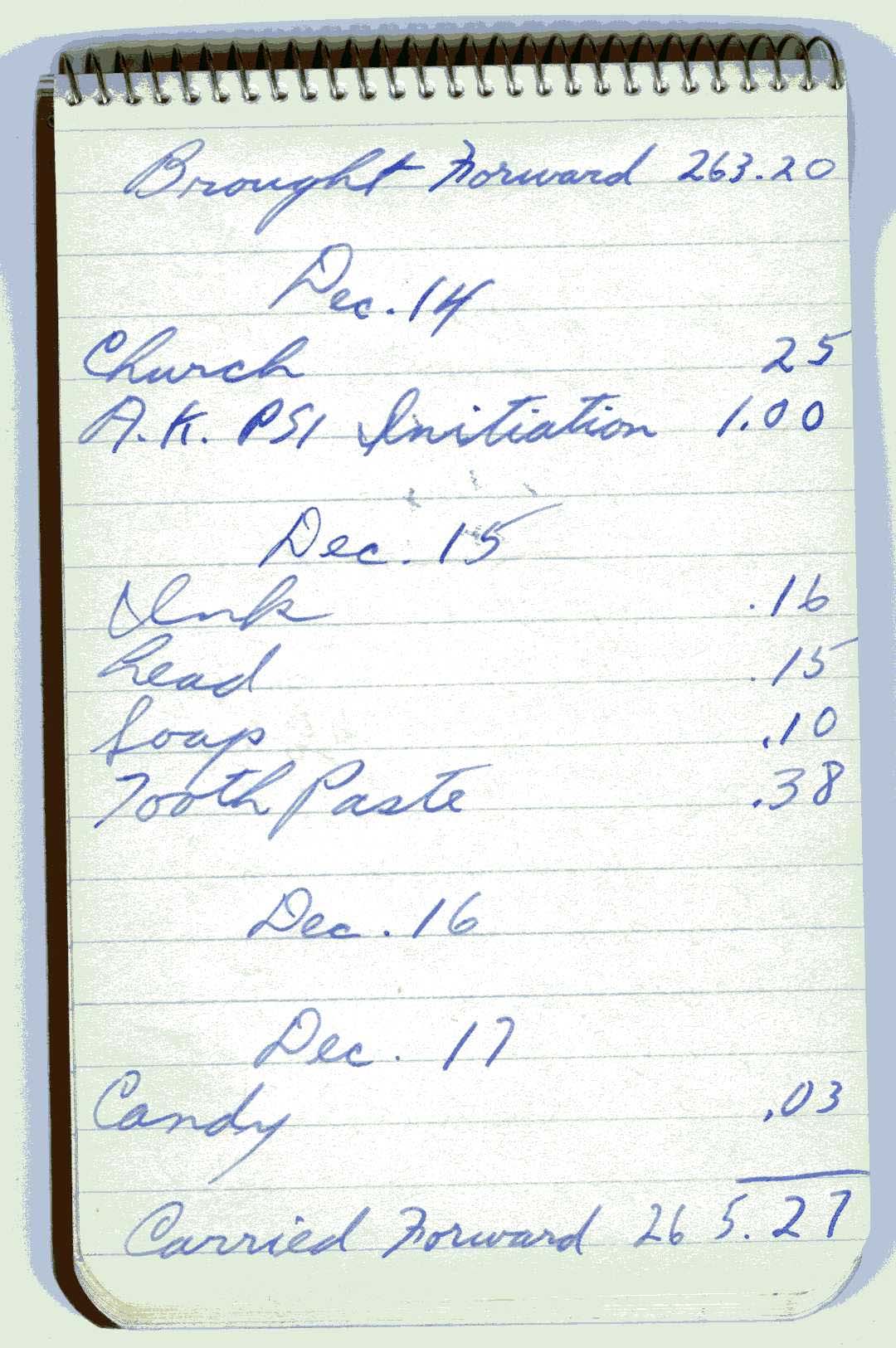Freshman account sheet